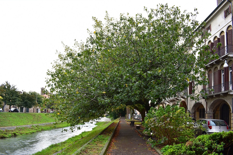Un vecchio fico (almeno a giudicare dalla corteccia) nel cortile di Anatomia Patologica (ripreso da Via Gabelli). Portamento e forma della chioma da manuale.Ponte San Lorenzo sul Tronco Maestro, un ragguardevole esemplare in una giornata autunnale.MarzoRiviera San BenedettoIn ottobre la pianta si tinge di giallo intensoLe foglie spiccano sui rami scuri dopo la pioggia.Ficus carica in posizione impossibile. Scatto dal Ponte della Morte.Al Lido di Venezia se ne possono incontrare molti allo stato spontaneo, nella foto un esemplare maestoso sulla Spiaggia dei Murazzi. Visto il vento che imperverso in inverno, lui cresce in larghezza piuttosto che in altezza. Isola di Lanzarote. Incredibile coltivazione in un ambiente magico.Corteccia liscia e sottile, colore cenerinoNumerose lenticelle. Nella foto dopo un temporale.I segni del tempo sull’esemplare di Anatomia Patologica.Foglia grande (per antonomasia), profondamente lobata con seni stretti e tortuosi il cui andamento si riflette sulla forma dei lobi, che risultano ingrossati verso il vertice. Bordo crenato.Presente uno spiccato polimorfismo fogliare: tre, cinque, sette lobi o addirittura nessuno. Ma non basta: si può cercare a lungo senza trovare due foglie coincidenti.Nervature palmate e dal colore che contrasta col verde scuro della pagina superiore. In rilievo quelle della pagina inferiore, che è molto più chiara.Al tatto la pagina superiore è ruvida. L’ingrandimento ne spiega il motivo: robusti peli che sembrano dei veri e propri uncini. Il bordo ne è particolarmente fornito.Pagina inferiore pubescente alla nascita, poi conserva una leggera peluria in prossimità delle venature.Se staccate, le foglie (ma anche i frutti) emettono un lattice appiccicaticcio e bianchissimo. Tipico della famiglia (Moraceae).Caratteristica gemma a puntaIl frutto è il classico fico (pianta e frutto portano lo stesso nome). Ma in realtà si tratta di una infruttescenza, o frutto multiplo, dal nome esotico: siconio.I frutti veri sono quei piccoli granelli duri e secchi (acheni) che si sentono sotto i denti.Essi sono completamente immersi in una polpa mielata (quando si dice ‘sei dolce come un fico’…) e variamente colorata. L’infiorescenza ha conformazione analoga. Una struttura ripiegata su se stessa che genera una cavità (con un’apertura in fondo) alle cui pareti sono attaccati miriadi di strani fiorellini.L’ingrandimento mostra la disposizione dei fiori (femminili in questo caso) attaccati per un peduncolo al tessuto connettivo e rivolti verso il centro della cavità.Nella foto si distinguono peduncoli, ovari, stili e stigmi bifidi. Tutti affastellati gli uni sugli altri come in un quadro di Mirò.I colori sono diafani. In trasparenza si vede l’ovulo all’interno dell’ovario che a sua volta è ricoperto da tepali vitrei. Lo stigma si divide in due lunghi e mossi segmenti.I fiori maschili compaiono in infiorescenze a fiori misti, e sempre presso l’orifizio (tecnicamente ostiolo).Quattro antere al sommo di brevi filamenti, che si dipartono da un lungo peduncolo.Calice con quattro tepali.
