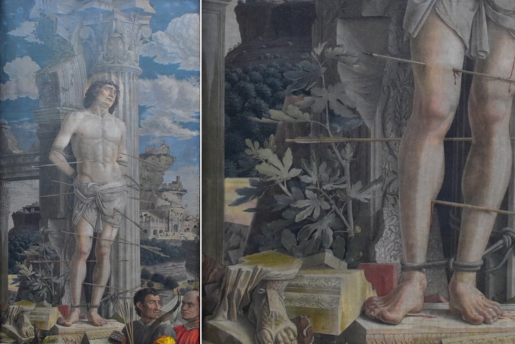 Adamo ed Eva, Palazzo Ducale, Venezia, pilastro d’angolo sudovest (sec. XIV, particolare). Nelle scritture non è detto se l’Albero del bene e del male fosse un fico (come sembra alludere il Maestro del capitello), ma è certo che i due ‘intrecciarono foglie di fico e se ne fecero cinture.’ Genesi 3,7.Maestro dell’Arazzo conservato al Museo agli Eremitani, l’artista sembra voler fissare i caratteri essenziali della specie: fusto presto ramificato; foglia a cinque lobi ingrossati al vertice, quattro seni stretti, lungo picciolo. Mantegna, San Sebastiano, 1481, Louvre. Bellini, Pala di San Zaccaria, 1459, Venezia. Anche i santi come gli alberi hanno loro caratteri identificativi, procedendo da sinistra: San Pietro (chiavi); Santa Caterina d’Alessandria (ruota spezzata); non Maddalena ma Lucia (il vaso contiene gli occhi); San Girolamo. In basso un angelo musicista che suona una lira da braccio. Dietro Girolamo due alberelli uno florido e l’altro morto, forse pioppi o frassini oppure olmi, difficile a dirsi. Il fico trovatelo da voi come utile esercizio.I sec. d C, affresco, Museo Libero D’Orsi, Castellammare di Stabia (NA). Pronti da mangiare.