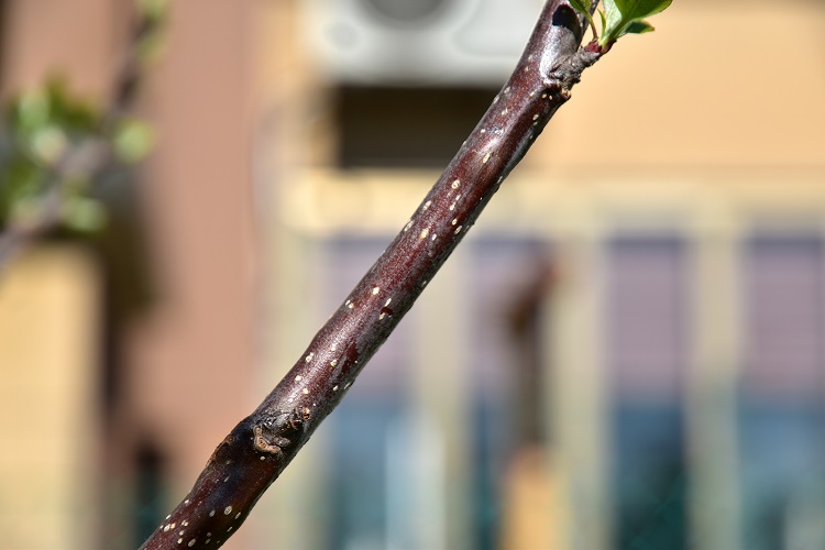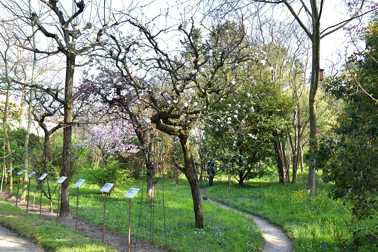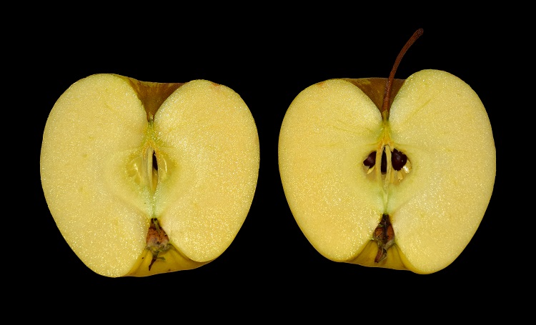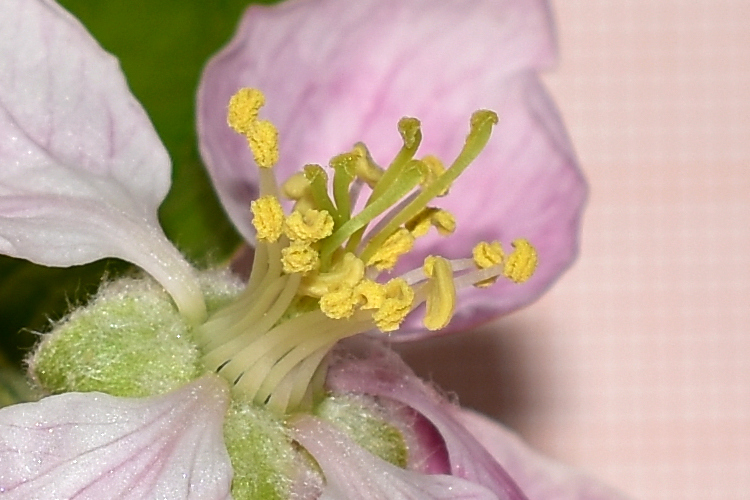 Le quali foglie sono quasi abborracciate, come se la Natura si fosse presa una pausa dal suo consueto lavoro di cesello. La forma è indecisa fra arrotondata e allungata. Apice acuto o anche no, base arrotondata ma più spesso ottusa; il bordo è molto irregolare serrato in certi tratti, altrove semplicemente dentato e ovunque con denti di grandezza differente. Pagina superiore verde scuro e pubescente (foto a fine maggio); carattere prezioso perché lo distingue dal melo selvatico che gli è molto simile per altri motivi.La pagina inferiore è molto più chiara, specie le nervature...…e costantemente pelosa (foto in novembre). Fiori disposti in corimbi. Cinque petali ampi che si sfiorano appena.Unghie sottili, si intravvede il calice alla base della corolla.Una ventina di stami, antere gialle su robusti filamentiAll’interno cinque stili sormontati da stigmi tozzi.Calice peloso con cinque sepali stretti e triangolari. Tolti petali, sepali e stami si distinguono bene il ricettacolo peloso e il modo in cui lo stilo si quintuplica.Fiori costantemente visitati da insetti pronubi.Boccioli rossi, poi sbiadiscono e i petali diventano rosati o bianchi.Sezione longitudinale del fiore, in alto la base dello stilo, al centro gli ovuli e le logge che li ospitano. Perfetto esempio di ovario infero. Sezione trasversale, al centro i tessuti che daranno luogo al torsolo e all’esterno quelli che diventeranno la polpaIl frutto è un pomo (falso frutto), inizialmente giallo verdastro poi arrossisce. Sezione longitudinale. Polpa profumata. Semi marrone scuro e facili da aprire (due tre per loggia). La specie è da sempre coltivata come fonte di nutrimento. Le dimensioni del frutto sono molto maggiori di quelle delle specie ornamentali ed anche del suo cugino più stretto, il melo selvatico (Malus sylvestris).Il portamento è arboreo col tronco che cresce dritto ma presto si dirama a formare una chioma tondeggiante. Giardino del mio amico Paolo S. a Voltabarozzo.A volte può somigliare a un arbusto, con più rami che si dipartono assieme dal terreno. Lio Piccolo, Laguna nord (VE), un posto magico.Aprile, ancora un esemplare in fiore in un giardino limitrofo al Cimitero Inglese di Chiesanuova.Un melo dall’età veneranda in Orto, presso l’aiuola con le piante importate per prime in Italia o in Europa, da sempre senza cartellino identificativo. In compenso è sempre circondato da cartelli che segnalano la presenza di freatimetri (strumento che misura la profondità della falda freatica), tanto che verrebbe da chiamarlo Malus freatimetra.Vetusto esemplare al giardino del Petit Trianon a Versailles (il giocattolo personale di Maria Antonietta).La corteccia è grigia e liscia da giovane, costellata da lenticelleInvecchiando si screpola; a volte in piccole placche.Rametti bruni e lenticellemuniti.
