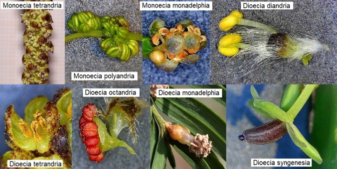 Il post è il terzo di quattro (1., 2., 3., 4.) dedicati al sistema sessuale di Linneo così come emerge dalla lettura del suo celeberrimo Species Plantarum (prima edizione, Stoccolma, 1753). Siamo faticosamente giunti alle classi 21. e 22., che contemplano le piante che oggi vanno sotto i nomi di monoiche e dioiche, non c’è spazio in questo post per le poligame di cui parleremo nel prossimo. Come abbiamo già fatto nei post precedenti ci limiteremo alle sole specie arboree o arbustive presenti nel blog, prendendo una sola specie come esempio per ogni genere coinvolto.