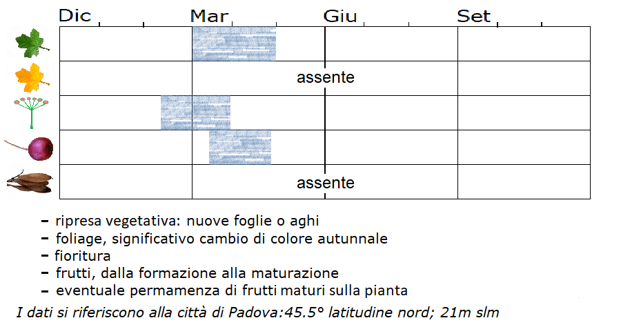 Fenologia minima. In città si comporta da sempreverde.Areale di origine – Native range