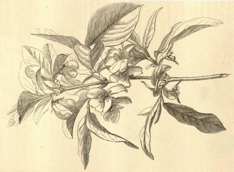 I tre volumi sono corredati da belle illustrazioni. In figura la pianta colta in piena fioritura. Alla base del rametto inizi di fruttificazione.