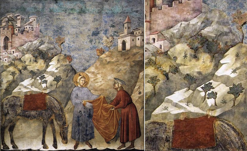 Come avrete ormai capito è impossibile dai dipinti determinare la specie, la scena è troppo lontana per trovare un qualche dettaglio dirimente. Non resta che provare a immaginare il paesaggio che si presentava all’artista, negli anni Novanta del Duecento, dalla città umbra.