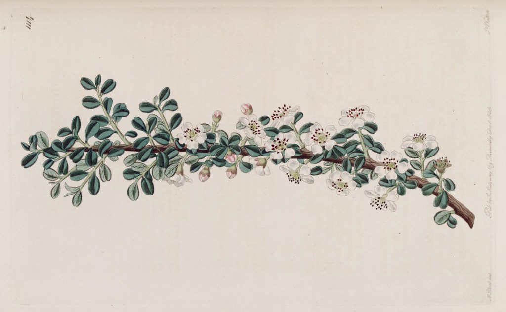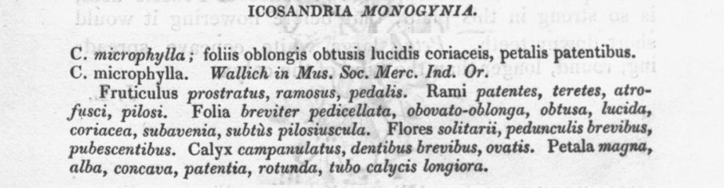 Insomma, se dico C. microphyllus G.Lodd. è come se dicessi C. intregrifolius (Roxb.) G.Klotz, mentre se dico C. microphyllus Diels, sto nominando il C. horizontalis Decne. Così solo la sigla ‘Wall. ex Lindl.’ mi garantisce che sto parlando del cotognastro a foglia piccola.