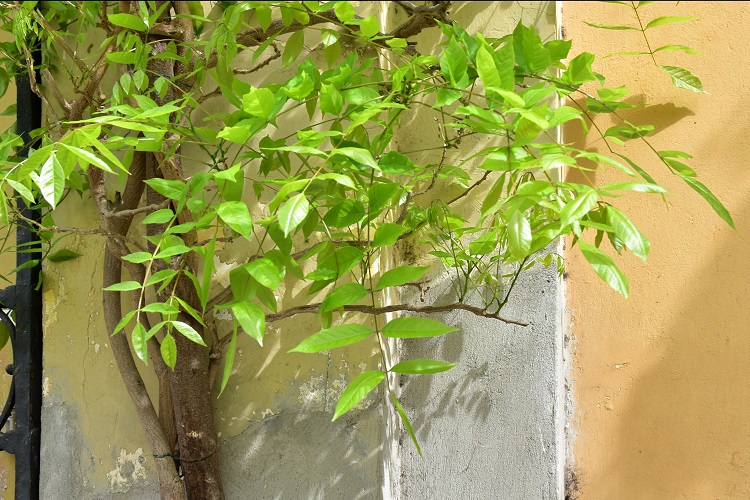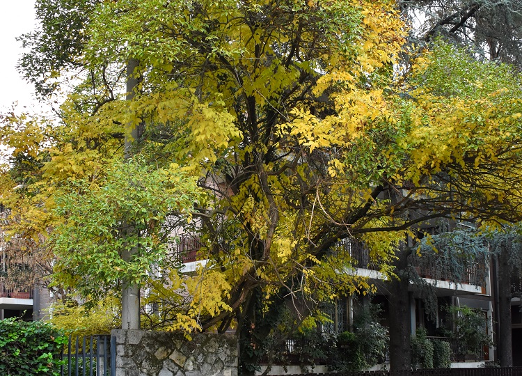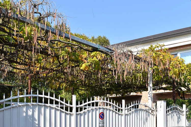 Rampicante dalla fioritura esuberante e profumata (di…: glicine) cantato da poeti e pittori. Comune in città, poiché a quanto pare molti giardinieri non si fanno mancare le cascate lillà, più o meno intenso, dei nutriti grappoli e, in assenza di quelli, il verde tenue del fitto fogliame.