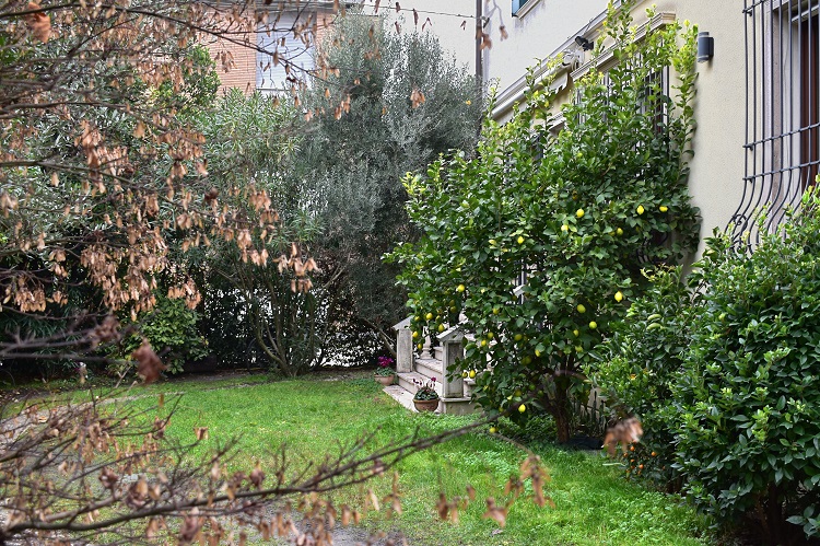 Anche uno degli esemplari dell’Orto ha collocazione simile. Non lo si vede spesso fiorito, peccato. Lo scortano un mirto e un ulivo, facilmente riconoscibili nella foto. Poi nella bella stagione gli portano molti fratelli in vaso a fargli ulteriore compagnia.