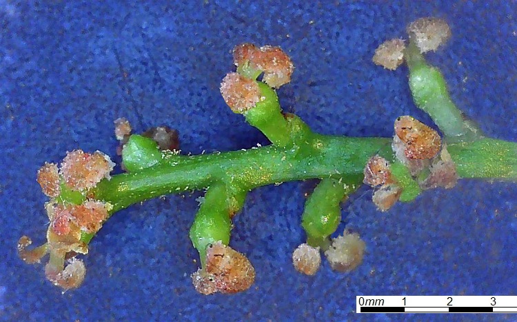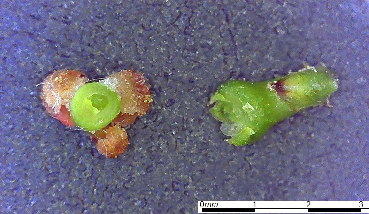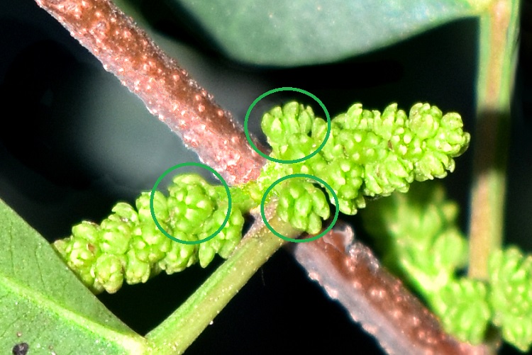 Le quali antere sono rossissime a maturazione e verde erba alla nascita. Non è facile individuare i singoli fioretti; nella foto ne ho cerchiati alcuni.