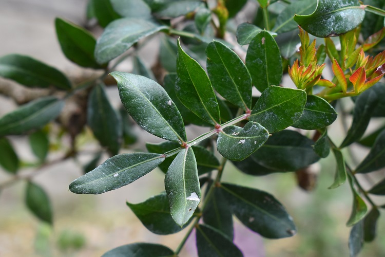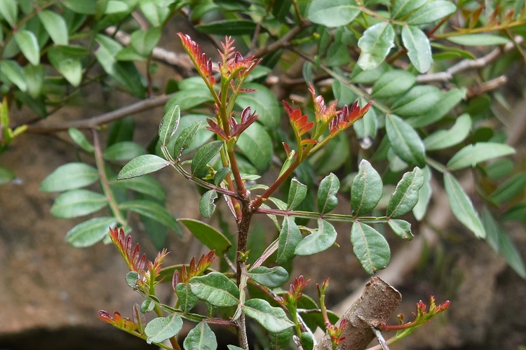 Pianta dal portamento in prevalenza arbustivo solo raramente si veste da alberello. La chioma è espansa e arrotondata per molti rami che si dirigono orizzontalmente; le foglie composte e numerose la rendono piuttosto fitta. Avvicinandosi si sente odore di macchia mediterranea.