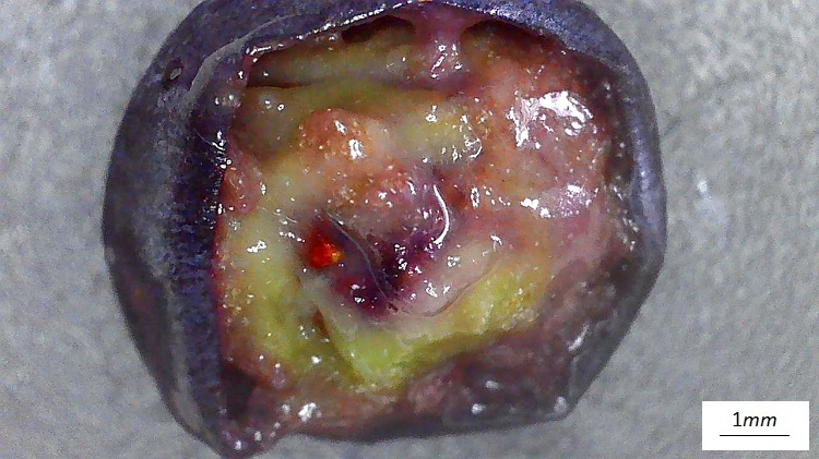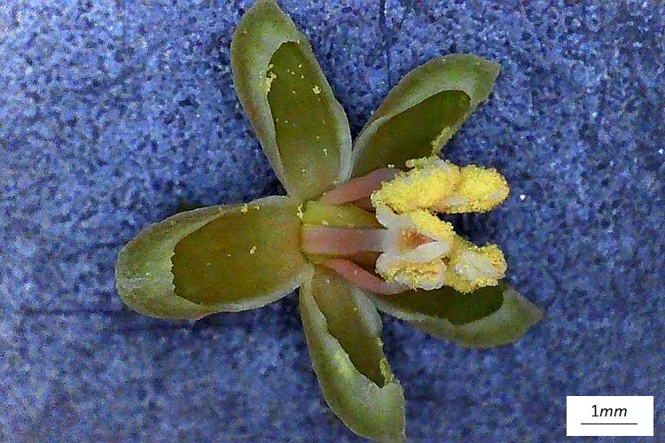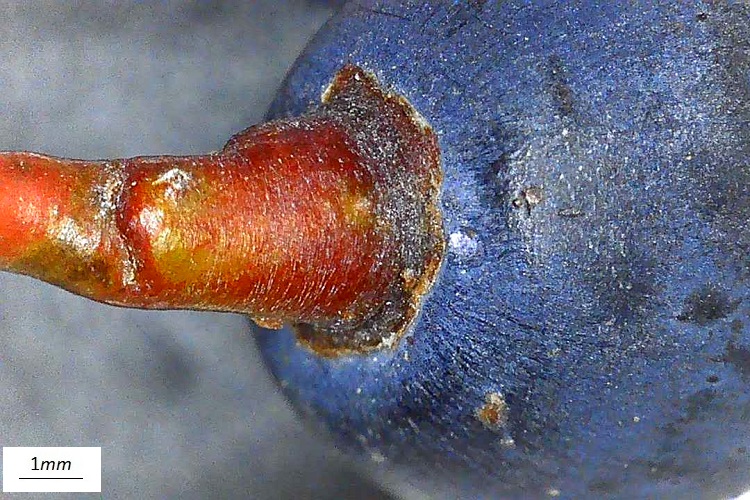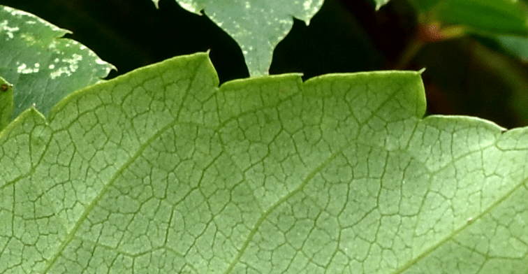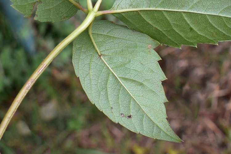 Foglia digitata formata da cinque foglioline che si dipartono dall’estremo del picciolo. Le foglioline hanno lamina verde, intenso anche se piuttosto opaco, e venature secondarie alquanto distanziate (ma non sempre). Piccioletto proporzionato.Pagina inferiore pallida, quasi glauca. Nervature in rilievo. Molto ben distinte le nervature terziarie, che sono del tipo reticolato. Apice appuntito e base ottusa. Denti perlopiù ottusi con una specie di mucrone in cima.Purtroppo la forma dei denti non è un carattere affidabile. La fogliolina nella foto ne è un eloquente esempio. Già in settembre cominciano a ingiallire, ma più spesso arrossano direttamente.Potendo il rosso attraversare parecchie gradazioni.I fiori sono piccoli e di un strano colore verde, si direbbe annacquato di giallo e rosa. Infiorescenza difficile da descrivere, ha prevalentemente un comportamento dicotomico: il peduncolo tende a dividersi in due, iterando questo modulo nelle diramazioni successive. In boccio la cosa è un po’ più chiara. Anche se in questo specifico esempio le diramazioni successive sono così ravvicinate da sembrare strani capolini.Fiore molto simile a quello della sorella tricuspidata. Cinque petali revoluti a formare vaghe coppette dai bordi bianco diafano, altrettanti stami in asse coi petali, antere a due sacche polliniche che si aprono longitudinalmente. Come nella tricuspidata i petali si ripiegano all’indietro esaltando il movimento slanciato degli stami. I quali stami circondano un pistillo giallo (rossastro alla base) a forma di cono un po’ compresso e terminante in uno stigma bifido. Il calice ha forma di coppetta e porta cinque lobi appena accennati. I petali sono inseriti tra i lobi e la base del pistillo.Nella foto si distinguono meglio i lobi del calice e la fessura fra i due stigmi.Incontro ravvicinato con due stami. Visti così non sembrano poi tanto slanciati.I frutti sono piccole sferette, ricoperte di pruina e nero violacee a maturità. Osservando la struttura dell’infruttescenza possiamo ripercorrere le considerazioni fatte a proposito dell’infiorescenza. Quello che resta del caliceCome per tutte le vitacee il frutto è una baccaPolpa alquanto acquosa, troppo per distinguere le diverse componenti.Il seme ricorda quello dell’uva con quella strana forma a pera. Dentro l’acino c’è un solo seme, al massimo due, carattere dirimente rispetto alla sorella inserta che invece ne porta fino a quattro. Ogni volta bisogna dunque aprirlo: tolto il peduncolo, basta schiacciare la piccola bacca fra indice e pollice, e i semi emergeranno dalla polpa appiccicaticcia mostrando la vera natura della specie.Sezione longitudinale del seme.Sezione trasversale. Non è facile capire com’è fatto dentro, troppo lungo parlarne: ci siamo dilungati già così tanto… La corteccia dei fusti (lunghi e sottili) è fondamentalmente grigia con riflessi rossastri; sostanzialmente liscia si screpola pochissimo.
