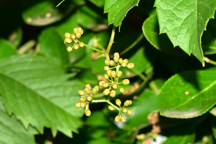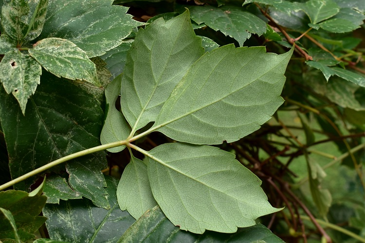 Arbusto lianoso vigoroso e prolifico da tempo naturalizzato. In vero esiste una specie sorella, assai somigliante e di gran lunga più comune, P. inserta. Le due sono spesso accomunate da giardinieri e vivaisti (e non solo) sotto l’unico epiteto di quinquefolia. A parziale giustificazione si dirà che si somigliano moltissimo. Un carattere dirimente è la capacità della quinquefolia di produrre dischetti adesivi in cima ai viticci (molto simili a quelli della tricuspidata) cosa che l’inserta non sa fare. Inoltre (ma è un carattere meno sicuro) il frutto dell’inserta porta di norma quattro semi, mentre quello della quinquefolia ne ha uno solo, a volte due.
