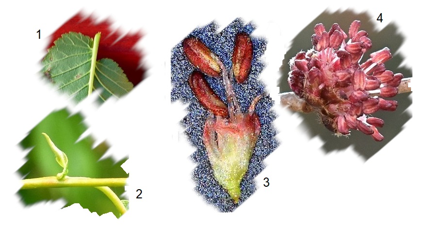 Le foglie sembrano essere un elemento fortemente unificante del gruppo. Certo avere le foglie semplici, alterne, asimmetriche (1), con stipole (2) non restringe più di tanto il campo, ci vengono in aiuto, però, i fiori poco appariscenti, con i soli tepali (3) e disposti in esigui mazzetti (4). Quanto ai frutti non potrebbero essere più diversi; drupe per i bagolari, samare negli olmi, noci delle zelkove.