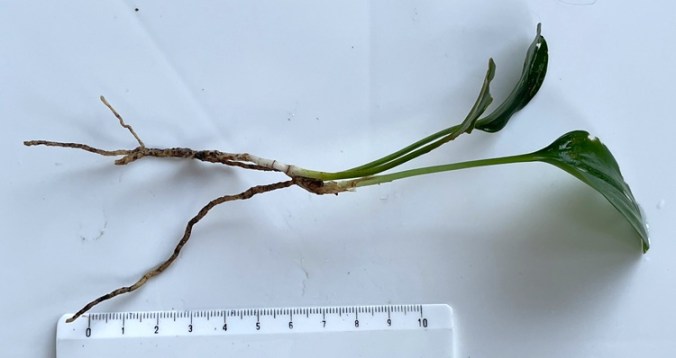Germogli di calicanto d’inverno, quelle foglie grandi e un po’ strane sono i cotiledoni. In due delle piantine si sono appena formate le prime vere foglie.