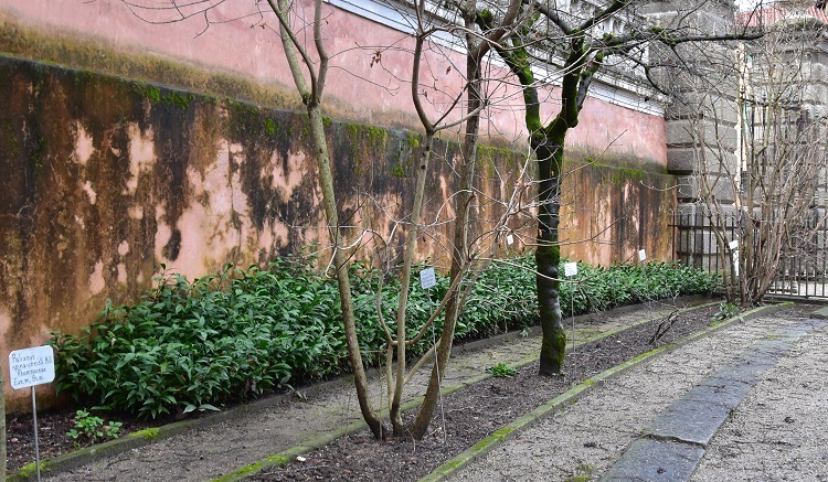Una macchia di ipoglosso ai piedi di un platano al Giardino TrevesDa diversa prospettiva. Sullo sfondo il tempietto e a sinistra l’edicola in pietra di Vicenza.Diversi esemplari vivono in Orto. Nella foto una bordura nell’aiuola presso la vecchia entrata; al centro una magnolia.Lungo il muro perimetrale cinquecentesco, presso la porta ovest.La canaletta (diramazione dell’Alicorno) che divide la parte antica dalla nuova. Si fronteggiano una teoria di ipoglosso e una di bambù. L’arbusto è fitto di fusti e di ampie strutture che a prima vista sembrano foglie……in realtà rametti modificati (tecnicamente cladodi o fillocladi), le vere foglie sono le formazioni più piccole al centro di quelle.I fillocladi han forma allungata con base e vertice acuti; inserzione alterna.Le foglioline sono attaccate alla ‘venatura’ centrale del cladodio e rivolgono la faccia inferiore all’osservatore.Al centro dei fillocladi la traccia dell’attaccature delle vere foglie. Si distingue una brattea protettiva alla base. La crescita di fusti e rametti è affascinante, ma troppo complicata per un misero post, per curiosi e interessati un poderoso articolo a questo link (si veda la figura 4)A volte la foglia si riduce a un’unghia, o squama. Nella foto sotto la fogliolina l’infiorescenza; si noti che (così come deve essere) i fiori spuntano all’ascella della foglia; insomma, tra foglia e rametto.Talvolta si trovano sulla pianta fillocladi privi dei tessuti molli, e le foglioline con loro; è possibile allora seguire i percorsi delle venature.
