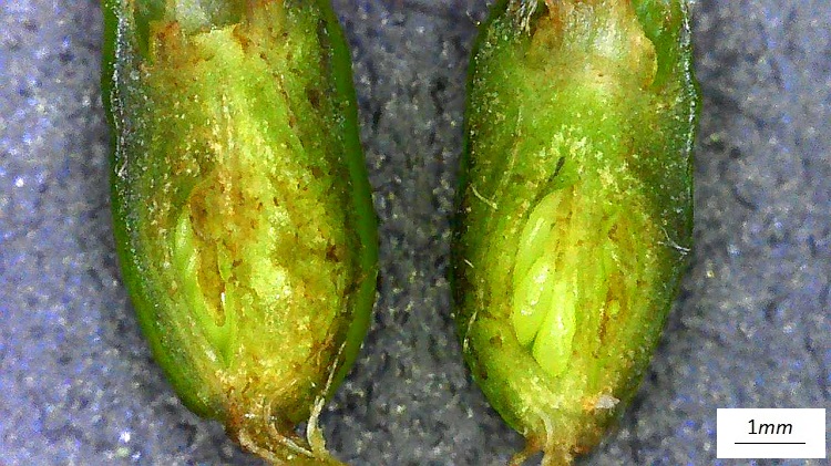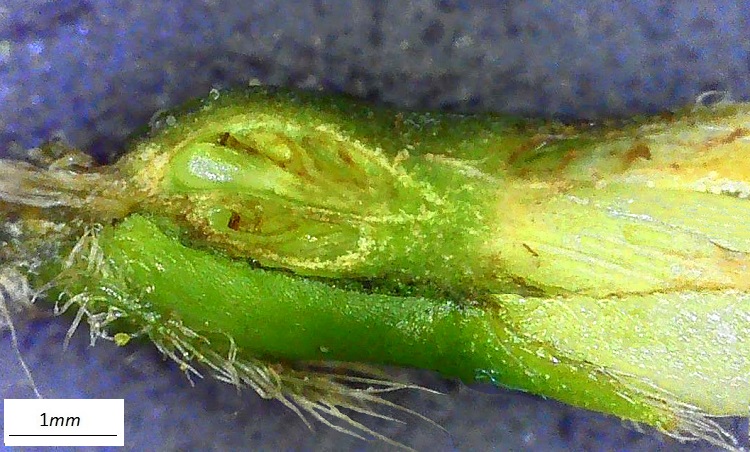 La configurazione canonica nei giardini è a siepe, talvolta è fatto arrampicare su altre specie, un’edera in questo caso (Via Palestro). Come già detto è naturalizzato, nella foto formazioni sulla spiaggia di San Nicolò (Lido di Venezia).Poco lontano lungo l’omonima digaA cominciare da novembre ingiallisce, ma solo nei luoghi più freddi o più esposti.Foglie a disposizione opposta, con internodi molto brevi in punta al rametto. Forma allungata con base ottusa e a volte cordata, vertice arrotondato ma spesso appuntitoPagina superiore verde non molto intenso all’inizio, ma scurisce alla fine dell’estate. Venature sottili e chiare, si distinguono bene anche le terziarie indecise fra un disegno a rete o a scala.Pagina inferiore chiara, quasi glauca, venature primaria e secondarie in rilievo.Minuscoli peli, percepibili solo al tatto e percorrendo la lamina verso la base, ricoprono la foglia e in modo particolare il bordo.Visibile invece la fitta peluria che ricopre piccioli e rametti Incredibile come cambi la percezione anche con pochi ingrandimentiRametti e fusti cavi all’interno. Tante piante hanno questa proprietà, ricorderete il lillà, che però appartiene alla famiglia delle Oleceae, mentre il Nostro presta il nome a quella delle Caprifoliaceae.Come già detto la fioritura è lunga e abbondante, ma anche profumatissima; un aroma caldo, viscoso, vagamente simile alla vaniglia. La corolla ha alla base un tubo lungo e diritto, mentre in alto si apre in due labbra.Il labbro superiore è ampio e nella parte alta si divide in quattro lobi ben delineati, mentre quello inferiore è singolo, stretto, forse un po’ più lungo, ripiegato all’indietro. I fiori hanno la curiosa abitudine di cambiare colore col tempo: passano da un bianco candido appena sbocciati ad un giallo intenso, quasi ocra, col passare dei giorni. La cosa succede anche se raccolti è tenuti in vaso.Spuntano a coppie su brevi rametti. Il calice è anch’esso tubolare, con cinque lobi triangolati e appuntiti, e protetto da una brattea aguzza e pelosissima. Cinque stami saldati alla parete interna della corolla, ch’è in vero pelosetta. Al centro nella foto lo stilo libero e verdolino.Stigma verde brillante, ricorda la testa d’un chiodo; antere giallo ocra.Lo stigma da vicino, colore verde smeraldo e superficie ricoperta da minuscole protuberanze madide di umori.Ovario infero, come in tutte le caprifogliacee. Nella foto si riconoscono a partire dall’alto: l’ovario immerso nel ricettacolo (e dentro un paio di ovuli), il calice, la brattea pelosa. Placentazione centrale (gli ovuli sono attaccati ad una struttura che si innalza al centro dell’ovario) Vale la pena costruirsi un diagramma fiorale, magari da usare come ripasso. 1 sezione sepali, 2 calice gamosepalo, 3 sezione lobi del labro superiore della corolla, 4 corolla gamopetala, 5 sezione del labro inferiore della corolla, 6 sezione antere, 7 stili saldati alla parete interna della corolla, 8 sezione carpelli (ovario), 9 sezione ovuli, 10 sezione brattea. I frutti sono bacche grandi quanto un pisello, inizialmente verdi, poi nero violacee a maturità.Si presentano a coppie strettissime su breve rametto, riproducendo la disposizione dei fiori.Resti di calice in cima, come in ogni frutto che derivi da ovario infero.L’interno è poco intellegibile, quando il frutto è maturo. Il conglomerato più scuro è composto da semi sparsi disordinatamente nella polpa acquosa e verdastra.Sicuramente più chiara questa sezione trasversale di un frutto in formazione, nella quale si riconoscono tre cavità formate da altrettanti carpelli. Sezione longitudinale, visibile la struttura al centro di cui si è già detto parlando della placentazione. I semi sono piccolissimi. E quanto alla forma, sgraziati: superficie tormentata e due strane scanalature longitudinaliA sinistra l’ilo (la traccia del cordone (funicolo) che collega l’ovulo alla placenta).Corteccia liscia di colore grigio marroneCol tempo si staccano strisce sottili di consistenza cartacea.