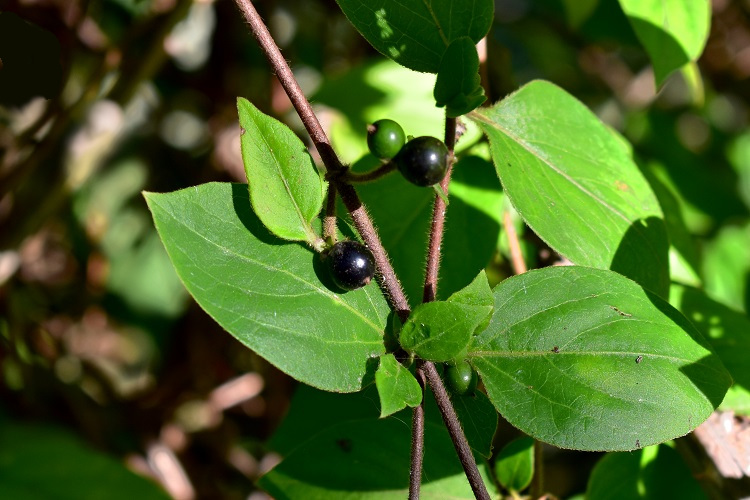 La pagina 216. Fiori a coppie e senza peduncolo, foglie semplici, stelo flessibile (insomma, è un rampicante).