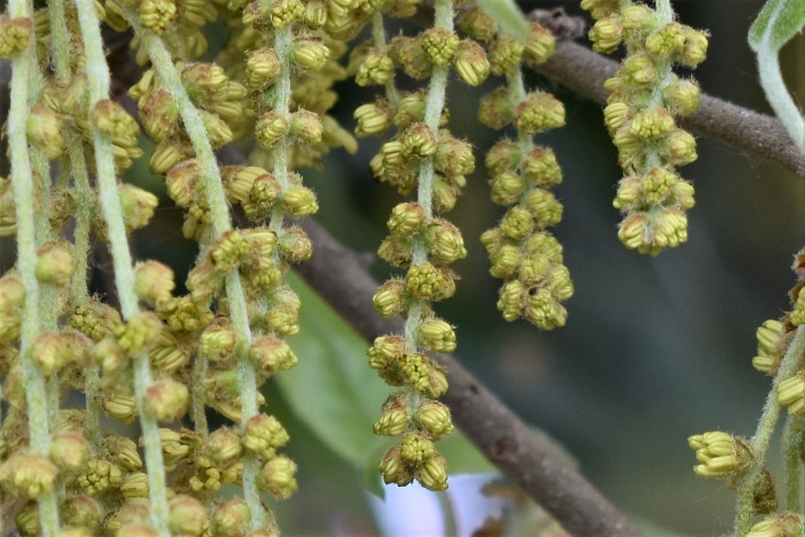 Fiori maschili in amenti di fioretti singoli nudi e protetti da una piccola squama. Nella foto Quercus ilex.