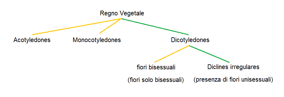 2Non possono stare nelle classi relative alle apetale, poiché prevale il fatto che i fiori non sono bisessuali.