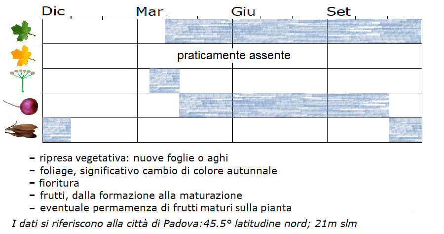 Fenologia minima. Le foglie ingialliscono in parte e poi cadono velocemente, anche i frutti cadono presto, solo in pochi permangono per un paio di mesi sulla pianta.Areale di origine (native range). Cina sud orientale.