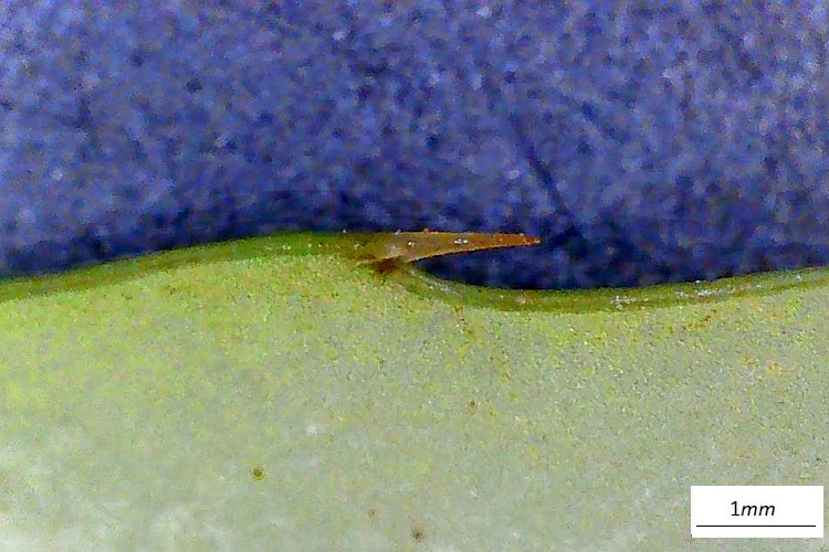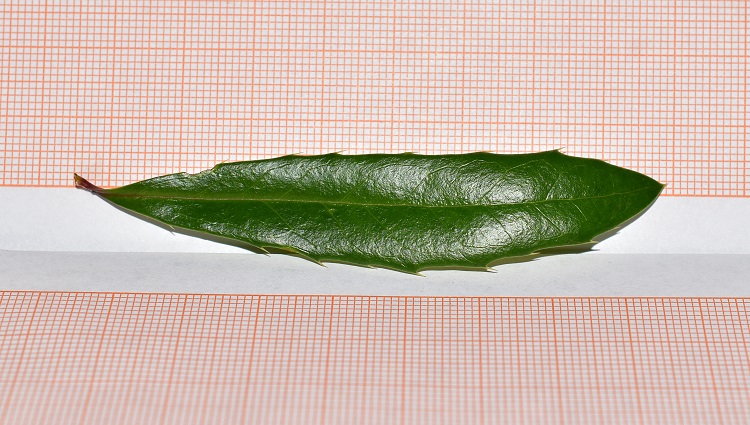 La pagina 360. Arbusto di un paio di metri. Giovani rami glabri, giallastri; spine abbastanza robuste; foglie sopra verdi, a fascetti di cinque, spesse, coriacee, allungate, apice acuto e spinoso, base che si assottiglia verso il picciolo, bordo spinoso dentato, spine pungenti. Fiori in fascetti, piuttosto piccoli, peduncoli lunghi; sepali largamente ovati, petali ovati a apice mosso. Ovario con uno o due ovuli. Frutti ellittici, neri, ricoperti di pruina, semi di solito uno.