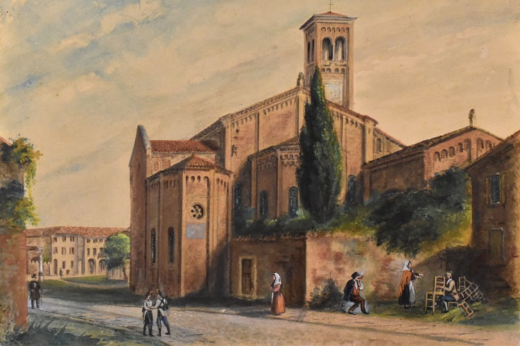 Il Nostro in una immagine del 1831 (Pietro Chevalier, Memorie architettoniche sui principali edifici della città, Fratelli Gamba Libraj, Padova 1831). Il Cipresso appare già alto e l’aspetto sembra confermare l’età stimata.