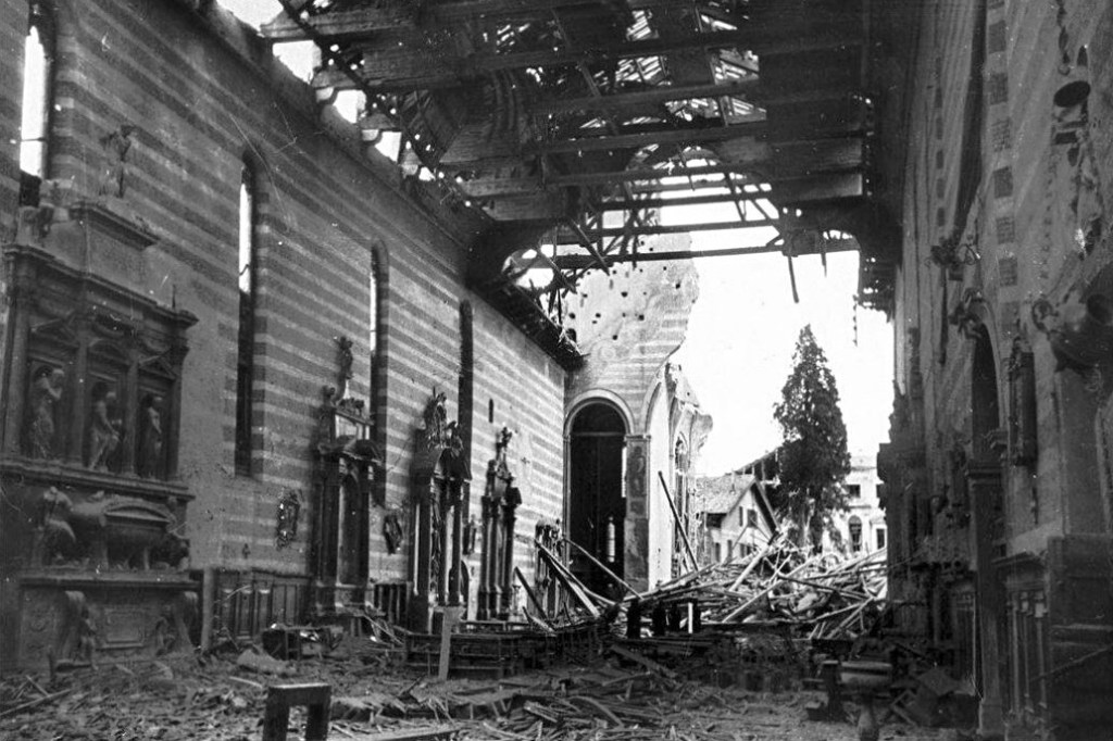 Oggi il monumento non esiste più perché distrutto nel bombardamento dell’11 marzo 1944; lo stesso in cui sono andati perduti gli affreschi del Mantegna. Ma il cipresso è miracolosamente scampato al disastro. (Confronta pag. 57)