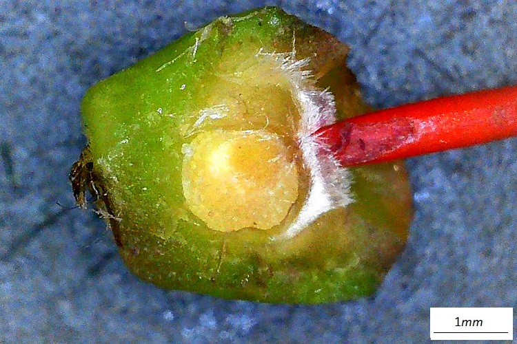 Come in questo caso, per un campione per il microscopio. L’infruttescenza è rimasta per un giorno e una notte sul mio tavolo, poi nel giro di poche ore il tappo si è aperto (come l’otturatore di una fotocamera) e sono emersi miriadi di microscopici semi.