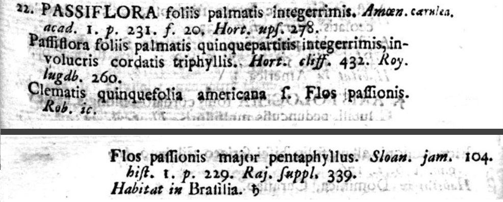 Passiflora caerulea L. Nome imposto da Linneo nel celeberrimo Species Plantarum, Stoccolma, 1753.