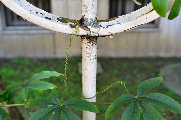 Passiflora sta per fiore della passione, nome legato ad una simbologia tutta cristiana: cinque stami per le ferite di Cristo; tre stili, stigma muniti, per i chiodi nella croce; le corone di staminodi fungono infine da corona di spine. Un europocentrismo arrogante e protervo ha sempre indotto botanici e giardinieri a non tenere in alcun conto i nomi assegnati dalle popolazioni locali; e molto spesso li ha condannati al ridicolo.
