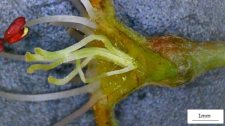 Cinque stili separati (diversamente dal melo suo stretto cugino), leggera peluria alla base. Stigmi piccoli e piatti. Ovario infero, come già dettoSezione trasversale. Cinque carpelli con relativi loculi che portano un paio di ovuli ciascuno.Il frutto è la ben nota pera, un pomo dalla forma allungata e rigonfia alla baseSezione trasversale. Al centro il torsolo, cioè tutto quello che proviene dall’ovario, e all’intorno la gustosa polpa frutto della trasformazione del ricettacolo. Quasi tutti gli ovuli maturano e i semi sono piccoli, lucidi e coriaceiAll’interno due grossi cotiledoni. Nella foto si distingue l’embrione e una delle attaccature (macchia scura) dei cotiledoni.Corteccia liscia da giovane, in seguito si fessura in piccole placche irregolari. Sovente è su portainnesto – il Cacciatore di Alberi è avvisato…Il colore è inizialmente grigio brunastro, ma con l’età vira decisamente grigio.