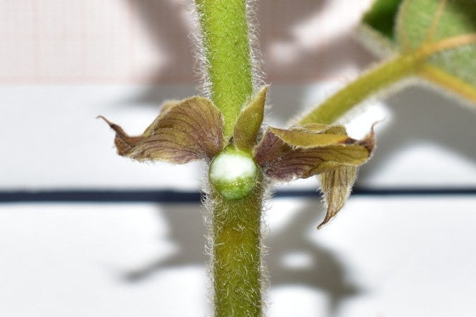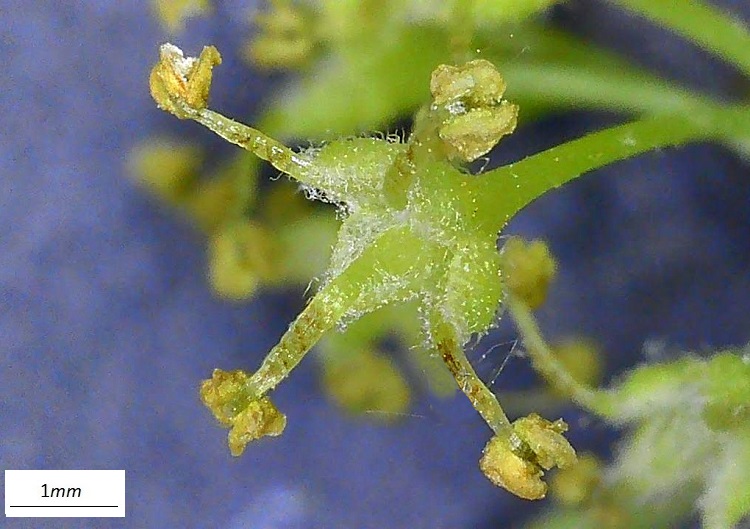 Singolo fioretto di Ficus carica. Quattro antere al sommo di brevi filamenti, che si dipartono da un lungo peduncolo. Se ne stanno assiepati all’interno di una cavità di cui a breve si dirà.