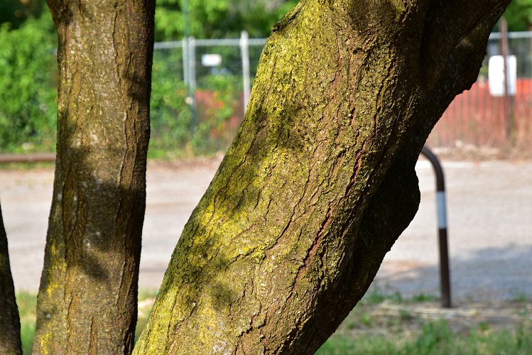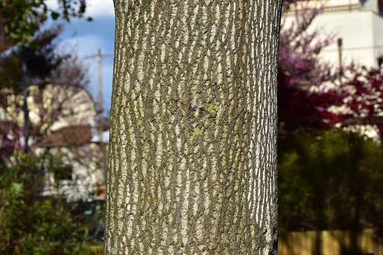Corteccia marrone chiaro o grigia; liscia con lenticelle da giovane, poi si fessura formando creste pronunciate che a volte sembrano intrecciarsi fra loro. In questo esemplare dell’Orto sono presenti contemporaneamente tutte le tipologie.