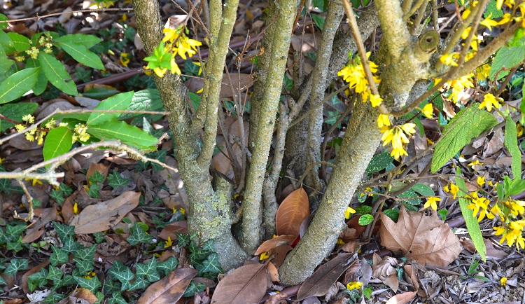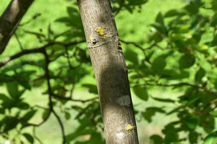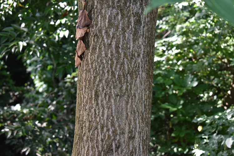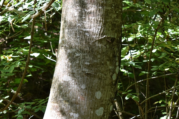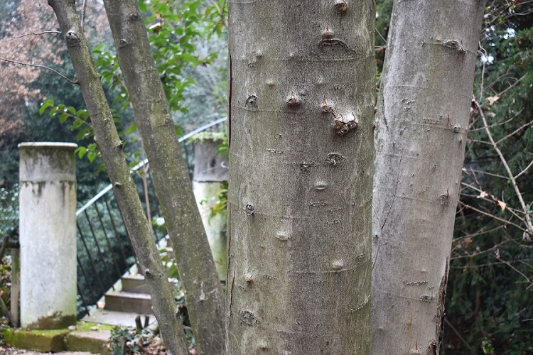 La corteccia è grigia e liscia, passandoci sopra con la mano si prova la stessa sensazione data da quella del faggio. Con l’età non si screpola, ma nel fusto cominciano ad apparire delle strane scanalature, tecnicamente: canule. In questo vetusto esemplare (Giardino Storico Treves) è levigata e lucida come quella della lagerstroemia