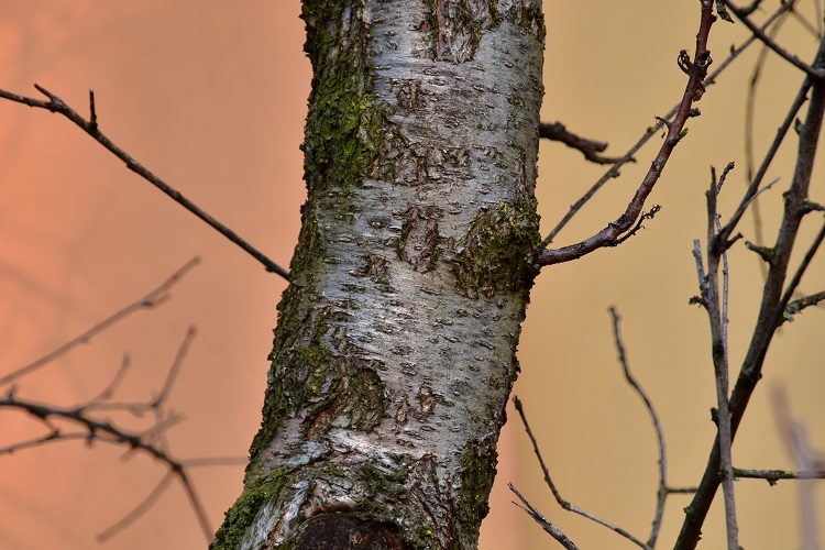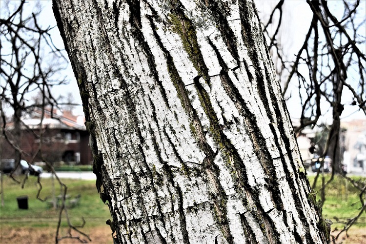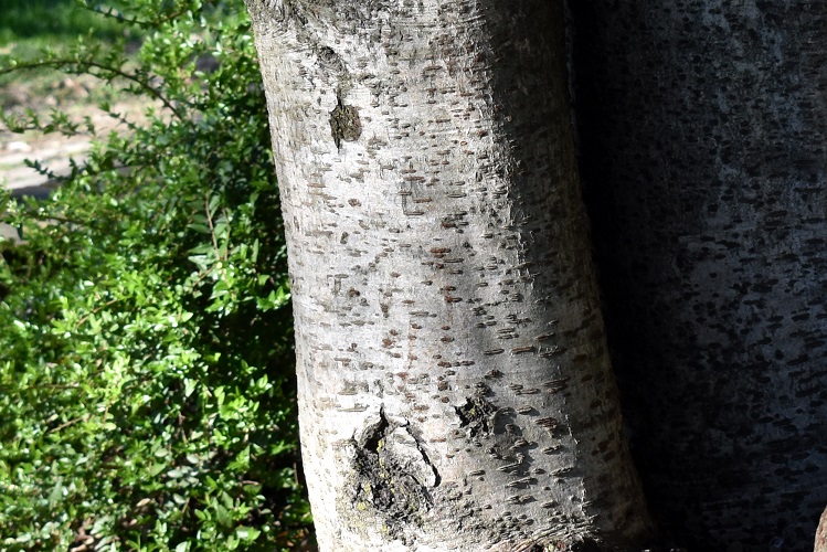Il post raccoglie alberi o arbusti con corteccia bianca o grigia; un grigio tenue, canescente, cinereo. Rispetto al raggruppare per forma catalogare per colore ha il vantaggio, credo, di una maggiore immediatezza, ma la strategia migliore è, dopotutto, usare i due criteri in modo combinato. Nell’immaginario collettivo i fusti di alberi e arbusti sono marrone, ma basta un attimo di riflessione per capire che non può essere così; anche senza necessariamente pensare alle cortecce variopinte e sfacciate di certe specie. Ho costruito altri quattro gruppi/post: cortecce grigio rossastre o grigie ma con varie regioni rossastre (ad esempio lungo i solchi, lì dove i ritidomi mostrano i tessuti sottostanti); cortecce marrone (si capisce); cortecce scure o solcate di nero; e, ovviamente, cortecce di altri colori (monocrome o variamente tinteggiate). In questo articolo ho provato a ordinarle per tenuità, partendo dalla betulla bianca e dal pioppo grigio giù fino a grigi più decisi; ma le sfumature sono tante e varie, e ben presto, non essendoci una reale soluzione di continuità, si finisce col penetrare nel territorio di qualche altro colore.