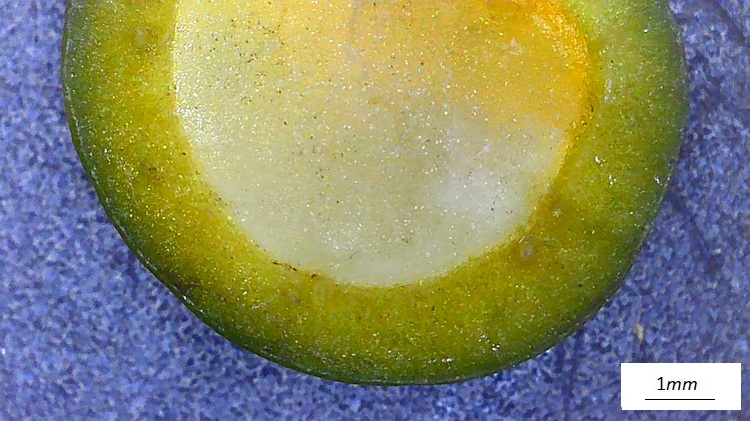 Grosso esemplare dai rami decombenti ai Giardini Reali di VeneziaNello stesso giardino assieme ad altre verzureIn pieno inverno in Orto, presso la vecchia entrata. Han dovuto contenerlo energicamente.Fogliame fitto e splendente; anche i fusti (che spuntano copiosi direttamente dal terreno) sono verdi.In realtà quelle che sembrano foglie sono rametti modificati (cladodi o fillocladi) Le simulano perfettamente, anche nelle venature che sono parallele come in tutti i monocotiledoni. Vertice acuto, base ottusa, ‘lamina’ allungata, bordo intero.‘Pagina inferiore’ più pallidaSezione trasversale del fillocladio. Si distinguono le venature (o meglio i vasi) Le vere foglie emergono dai rametti senza picciolo e sembrano brattee.Per capirci qualcosa dobbiamo ricorrere a una illustrazione.In maggio emette nuovi fusti e rametti; proprio punte di asparagi…Ma le sorprese con questa pianta non finiscono qui, poiché i fiori sono un capolavoro di singolarità. Intanto c’è da dire che l’infiorescenza è un racemo; da qui il nome di specie che la distingueva agli occhi di Linneo dagli altri ruscoli ché i fiori li portavano in mazzettini (unisessuali e al centro del cladodio).E poi, guardateli: sembrano frutti. L’inganno è nei petali carnosi (‘calice e corolla uniti nella crescita in un unico corpo carnoso’, Linneo dixit) Quando il fiore appassisce e l’ovario si accresce, la corolla si stacca. Certo, si dirà, come in ogni fiore. Ma qui resta come appesa, incerta sul da farsi.Sezione longitudinale del fiore. Si riconoscono i petali carnosi (gialli), l’ovario verde, il breve stilo e lo stigma giallino. Attorno allo stilo gli stami (rossicci) saldati per i filamenti (fiore monodelfo) e per le antere (fiore singenetico) come aveva detto Moench. Il tutto sormontato da una apertura lasciata dai lobi dei petali. Un disegno a chiarimento. Due carpelli e due ovuli, ma di solito solo uno fecondato. Stigma bifidoAvvicinandoci alle antereI frutti sono bacche sferiche di colore rosso, restano a lungo sulla pianta. Foto in novembre.Frutti in formazione. Ovario supero.In settembre cominciano timidamente a cambiar di colore. Residui di calice alla baseIn cima residui di stilo e stigmaChe sia una bacca è ben documentato dalla foto: seme immerso nella polpaDal centro, il seme (a volte due), seguono tessuti derivanti dalla parete dell’ovario: endocarpo e mesocarpo (indistinti come in quasi tutte le bacche); esocarpo (la pelle). Seme, una sferetta di poco meno di un centimetro; tanto endosperma bianchiccio. Si riconosce la regione da dove sbucherà la radice e tutto il resto.Embrione. Si distingue la piega dei due cotiledoni, e la parte più scura della radichetta.Ma una volta aperto la delusione è grande: non si vede un granché.
