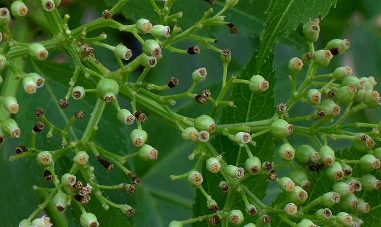 Sambuchella spontanea lungo il Bacchiglione presso il Ponte dei Tadi.L’esemplare dell’Orto, presso la Porta Sud. Le grandi foglie pennate gli danno un aspetto leggero. Molti i nuovi fusti in basso. In ottobre. Foliage effimero.Sentiero della Val d’Assa, Altipiano di Asiago. Un posto bellissimo e ricco di specie, sul quale dovremo fare prima o poi un post.Foglia composta imparipennata Molte paia di fogliolinelunghe e strette, vertice appuntito Rachide sottile e scanalato. Bordo serrato. Talvolta non si forma un vero piccioletto.Pagina inferiore più chiara, base asimmetrica.Stipole, grandi e piccole, alla base delle foglie. Inserzione opposta.Fusti erbacei e scanalati longitudinalmente. Alcuni seccano e muoiono. Foto in ottobre. Piccoli fiori bianchi in infiorescenze a ombrella (composta) sulla cima dei fustiCaratteristiche le antere rosso violaceeCinque petali bianchi di consistenza quasi gommosa. Cinque gli stami dai filamenti mossi.L’inserzione è fra un petalo e l’altroCalice verde tenue a cinque lobiAnche i petali sono saldati alla baseOvario infero, stilo inesistente, stigma diviso in treTre la divisioni dell’ovario – sezione trasversale.Sezione longitudinale del pistillo. Si distingue un ovulo miracolosamente illeso.Frutti appena formati, residui di calice in cimaDrupe inizialmente costolate, dentro tre o quattro noccioli Le drupe a maturità sono lisce e levigate e di colore nero violaceo. Unalberoalgiorno non ha al momento una foto coi frutti maturi, la prendiamo in prestito da “Andrea Moro – CC BY-SA 4.0”, sempre molto ben documentato.I frutti cadono presto. Approfittiamo di questa foto per osservare meglio l’infruttescenza (e quindi l’infiorescenza) a tre raggi che si riproducono uguali a se stessi come in un frattale.