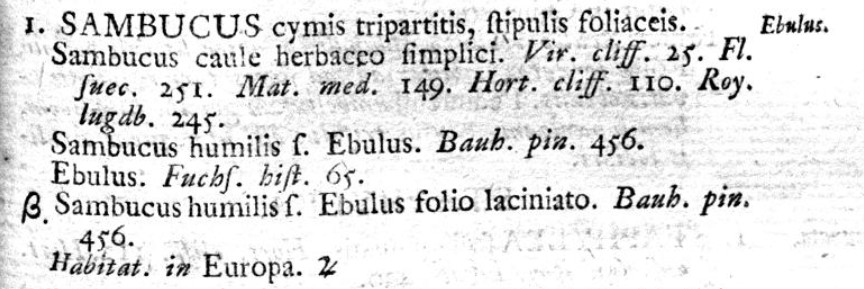 Sambucus ebulus L. Nome imposto da Linneo nel celeberrimo Species Plantarum, Stoccolma, 1753
