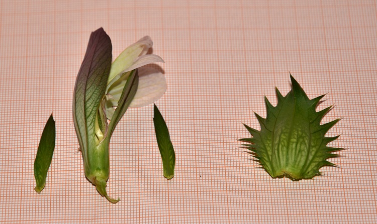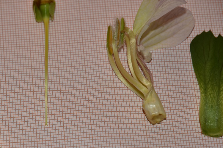 Ed ecco la corolla con alla base un tubicino (o anello), dal quale emerge lo stilo. Il quale stilo termina in uno stigma bifido. Strane forme hanno i quattro stami e altrettanto curiose sono le antere con il perimetro peloso.