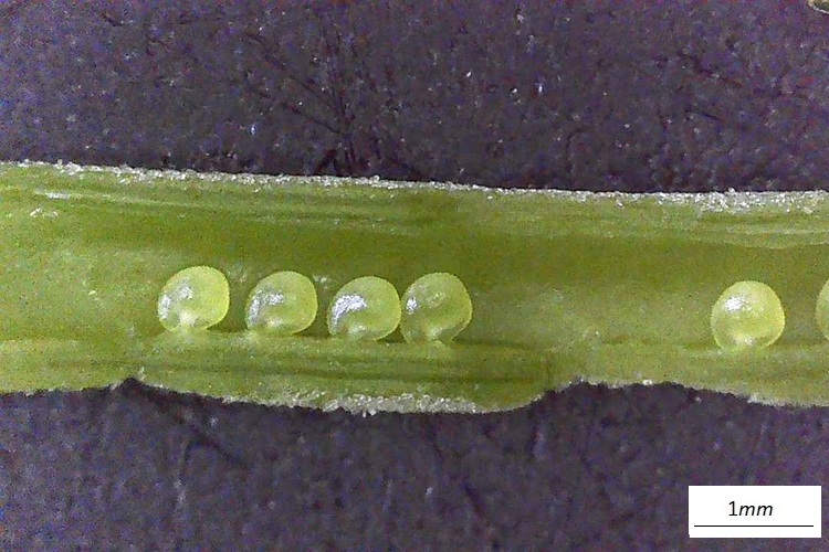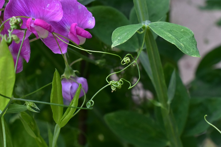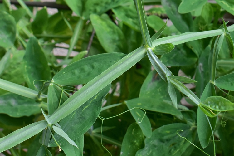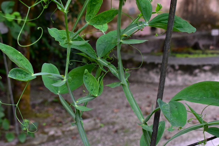 I fusti, verdi e alati, si alzano faticosamente,……ma non se trovano dove aggrapparsi. (Foto, Orto Botanica di Padova)Rametti alati di un verde quasi glaucoSi biforcano lasciando stipole allungate e appuntite alle diramazioni… …e alla base dei piccioli. Le quali stipole han venature longitudinali e equidistanti.Foglia composta, due foglioline (caso molto raro). Hanno forma allungata, stesso colore dei rametti, vertice e base smussati, bordo intero, sessili (o quasi). Le venature secondarie seguono la curvatura del bordo. Picciolo alato.La foglia termina con viticci robusti e rigorosamente trifidi.Fiore papilionaceo e coloratissimoAmpio vessillo e ali appressate alla carena, tanto da coprirla interamente……e nasconderne il colore diverso (verdolino). Il calice ha cinque lobi sottili e allungati, saldati alla base.Curiosa la configurazione dei boccioli, con i lobi del calice prominentiL’infiorescenza è un grappolo all’estremo di un lungo stelo. Boccioli gialli.Stami saldati alla base, in numero di dieci, con antere dorate. In vero più che di filamenti saldati si tratta di una vera e propria guainaMa un filamento è staccato dagli altri (fiore diadelfo come dianzi detto).Il pistillo ha già la forma del baccello che verrà. La guaina dei filamenti ha lasciato traccia di sé una volta asportata.Stigma peloso su un solo lato (una sorta di spazzolina)Ovuli, in fila per unoIl frutto è un baccello, verde e poi marroneResidui di calice e stilo.I semi hanno una appendice, che pare un eleosoma.Molto endosperma. Poco si distingue dell’embrione.