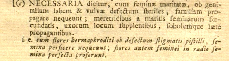 Quando le donne delle coppie (nel disco) sono sterili, i mariti procreeranno con le meretrici (del raggio). Pagina 840, Systema Naturae, 1759.