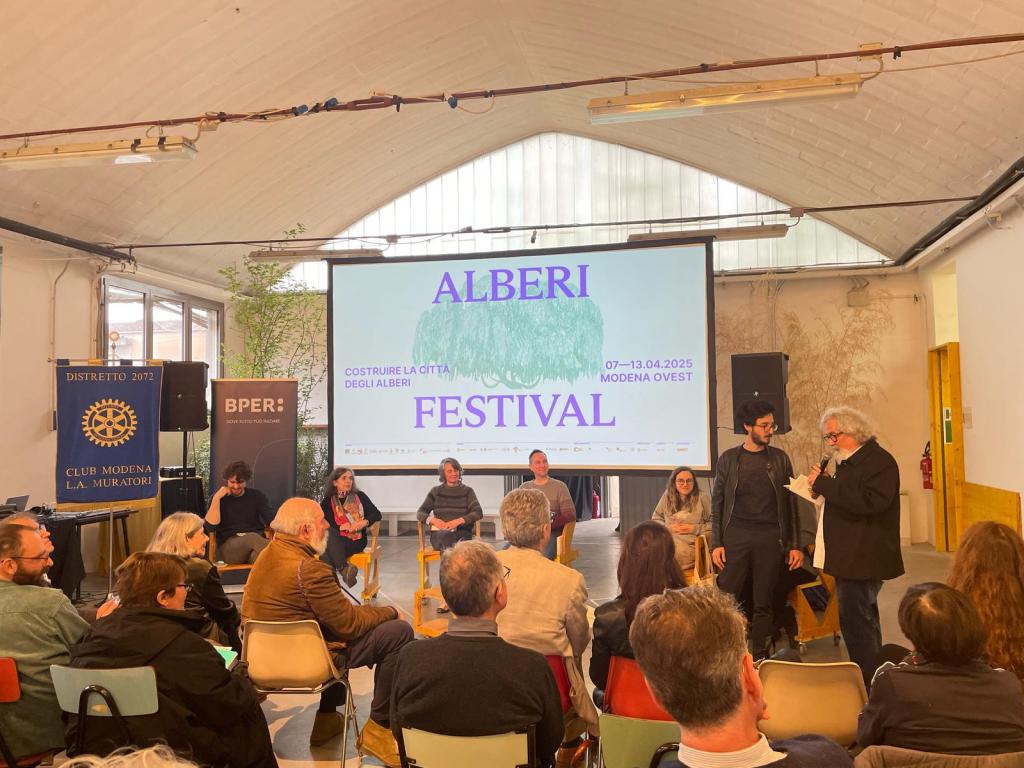 Nel novembre del 2014 ho ricevuto un messaggio di posta che mi segnalava un Concorso letterario bandito dal Rotary Club di Modena suggerendomi di partecipare a una delle sezioni: ‘Saggi e altri elaborati di genere non fiction dedicati agli alberi’. Partecipare a un concorso è una cosa che non avrei mai fatto, se non avessi ricevuto l’invito, così un po’ per cortesia un po’ per curiosità (mettermi alla prova in un articolo che non fosse organizzato seguendo le immagini come nei post) ho accettato, ritenendo che, dopotutto, un premi l’avevo già vinto per il solo fatto che il blog era stato notato. Di scrivere un articolo tecnico non se ne parlava, mi sarebbe invece piaciuto, e divertito, ispirarmi alla tipologia dei post della sezione ‘Sentieri e percorsi‘; avrei scelto un itinerario cittadino dove oltre a descrivere gli alberi incontrati avrei parlato delle suggestioni suscitate dalla loro vista. Doveva essere un invito al lettore a guardarsi intorno camminando nella propria città. Così non solo ho partecipato ma ho anche vinto (un premio in denaro e l’onore di vedere il saggio pubblicato), inutile commentare la grande soddisfazione per l’accaduto. In questo post (ricevuta l’autorizzazione da editore e organizzatori del Concorso) riporto l’articolo integralmente. Non ho voluto però rinunciare ad aggiungere qualche foto, un po’ per alleggerire lo scritto un po’ per il piacere della vista. (Nella foto, cerimonia della premiazione, 13 aprile 2025; l’autore non ha potuto essere presente e ha dovuto mandare un suo rappresentante)