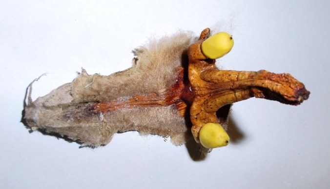 Curioso il nome: dal greco ‘di’ che vale due e ‘oon’ che sta per uovo. I due ovuli (nudi) sono ovviamente le due escrescenze gialle. Le macchioline nere sono micropili. (Foto, Wikipedia)
