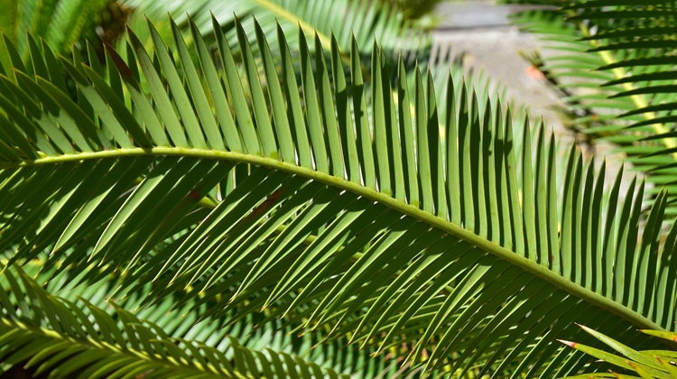 Sessili e con bordo leggermente dentato, a denti più fitti in cima. Le venature corrono parallele, ma non si comportano come nelle monocotiledoni, si dividono invece al modo del ginkgo. Anche i dioon hanno lo stesso comportamento. Le cycas invece sono a unica venatura centrale a somiglianza degli aghi dei pini.