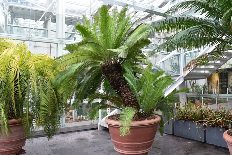 Le infiorescenze in Cycas e Dioon sono enormi e fanno una certa impressione. Nella foto infiorescenza maschile di revoluta, lo strobilo è formato da miriadi di squame (microsporofilli), delle dimensioni di qualche centimetro, disposte a spirale e inferiormente completamente rivestite di polline