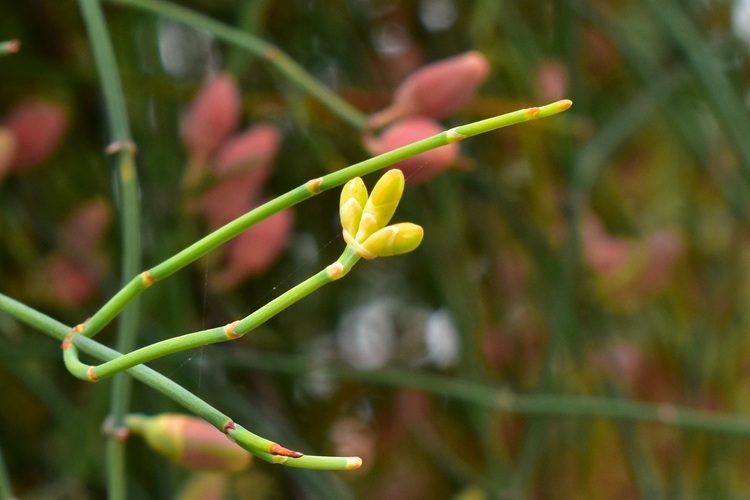 Nella foto sono distinguibili almeno quattro specie di efedra, da sinistra: E. fragilis, E. distachya, E. procera (appena visibile dietro la distachya), E. foeminea. Tutte hanno portamento arbustivo e tutte fusti lunghi e sottili capaci di fotosintesi.