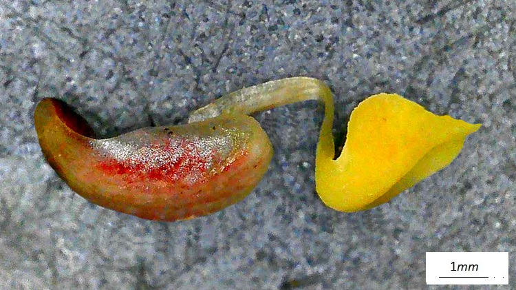 Liberata dal calice, la corolla appare in tutta la sua singolarità: cinque petali quadripartiti: breve e stretta unghia, petalo a coppa (a elmo dice il buon Linneo) diafano a striature cremisi, restringimento (istmo) bianco traslucido, appendice a mo’ di bandierina gialla.