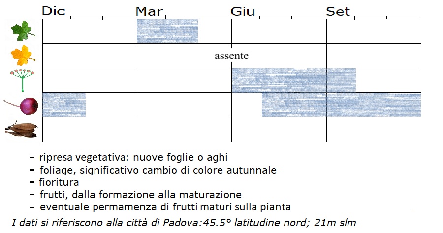 Fenologia minima. I diversi periodi sono ricavati dal comportamento dell’esemplare della serra patavina. In cattività i giardinieri raccolgono i frutti appena maturano, in natura le cabosse restano a lungo sulla pianta.Areale di origine (Native range). Bacino dell’Orinoco e del Rio delle Amazzoni, America meridionale.