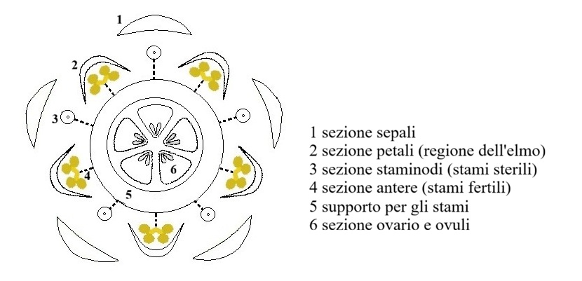 La descrizione della configurazione di stami e staminodi denuncia la natura monadelfa del fiore. Una fallacia del Professore di Uppsala lo voleva poliadelfo, il che sta a ricordarci come l’errore sia sempre in agguato; per tutti.