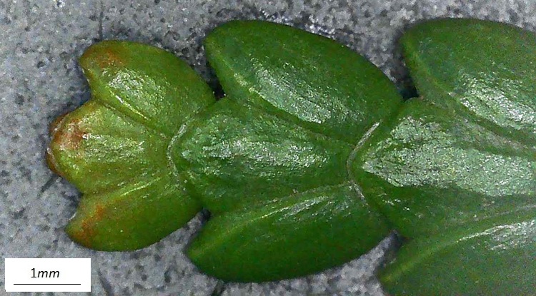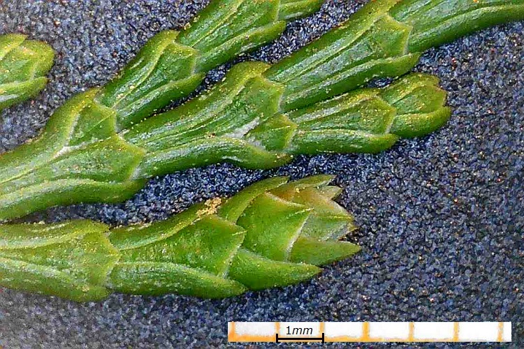 Per una fortunata coincidenza le cupressacee di questo gruppo hanno le foglie, ancorché molto piccole, più grandi di quelle del gruppo precedente che non superavano il millimetro. Può sembrare un ossimoro, ma, come si è detto in altra occasione, il fatto che le foglie siano piccolissime non implica che a una osservazione attenta appaiano tutte uguali.