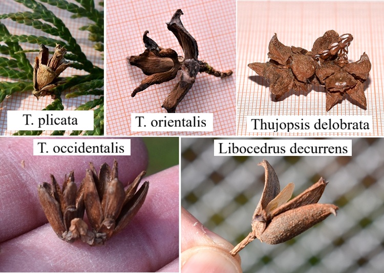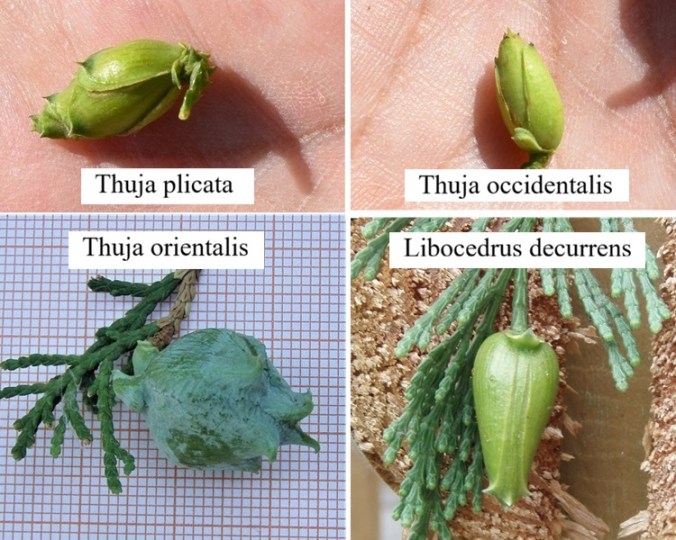 Foglie squamiformi e strobili a rosetta – Libocedrus, Thuja, Thuiopsis