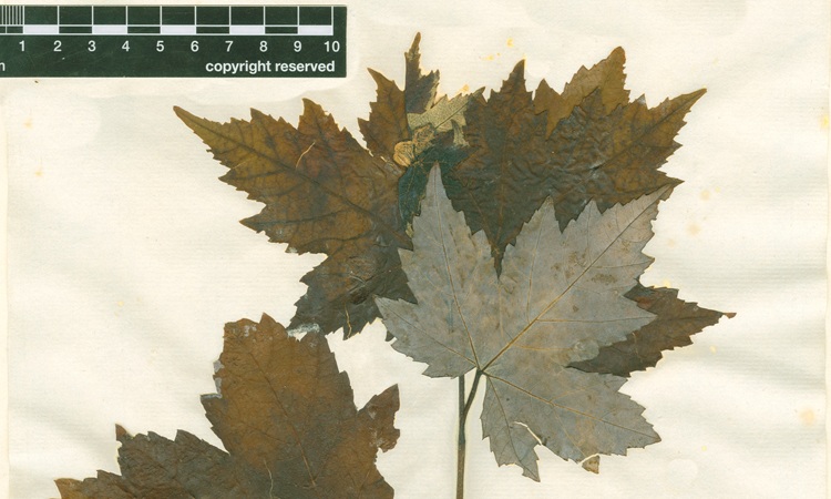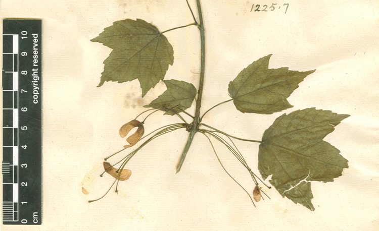 L’angolo tra le ali dei frutti sembra più stretto a giudicare dal campione dell’erbario di Linneo. Alla Linnean Society si conservano due fogli di erbario del Professore di Uppsala, in quello in figura la foglie sono trilobate……nell’altro hanno cinque lobi.Corteccia cenerina, si fessura leggermente con l’età Liscia da giovane e sui nuovi rami.